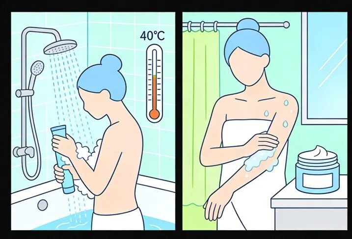 不妨按照这个科学沐浴指南来做:首先水温可以控制在37-40℃(接近体温);每次洗澡控制在5-8分钟(淋浴)/10分钟(盆浴);洗浴剂可以选择pH5.5的弱酸性沐浴露,避免含月桂醇硫酸钠成分。